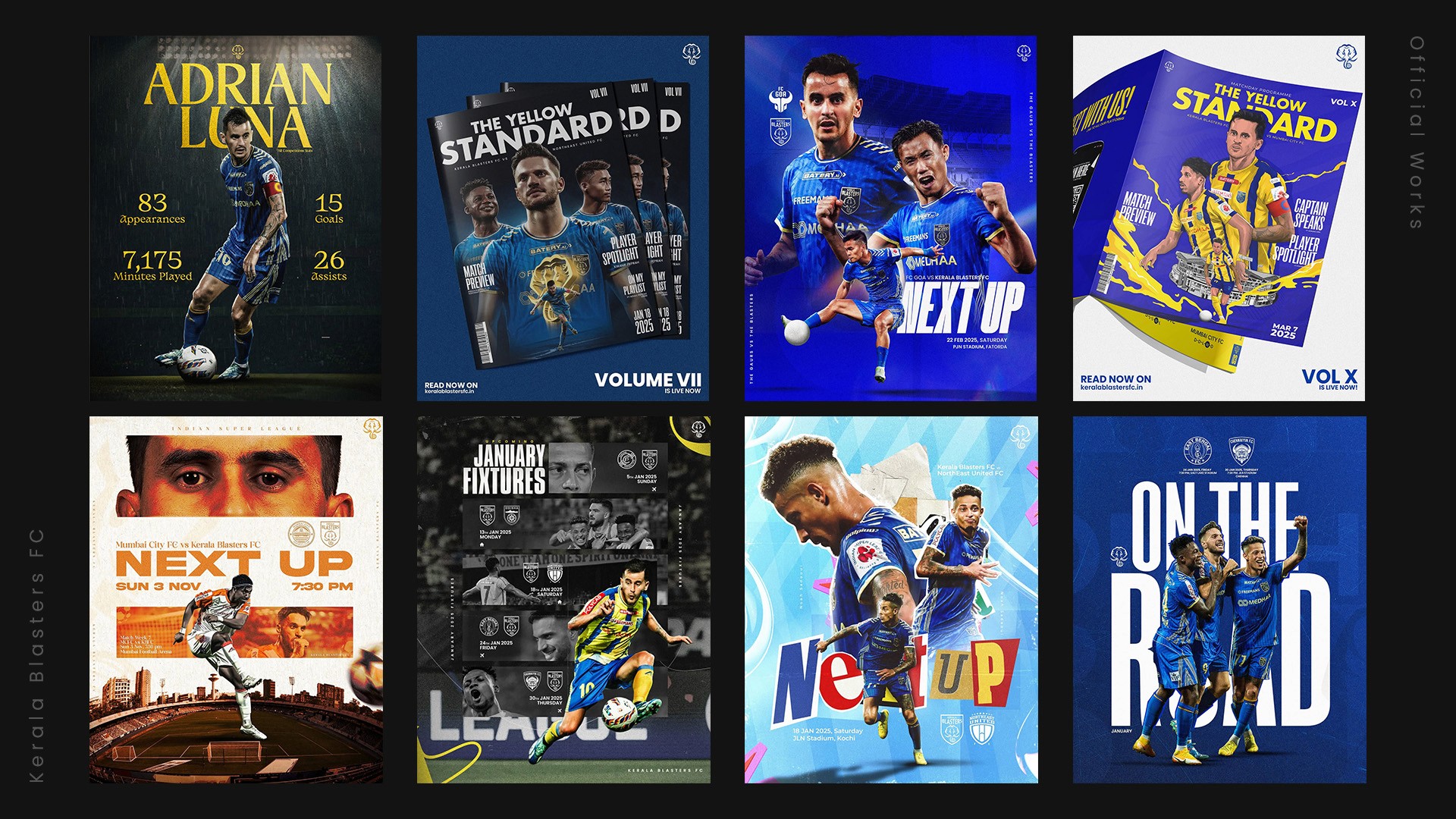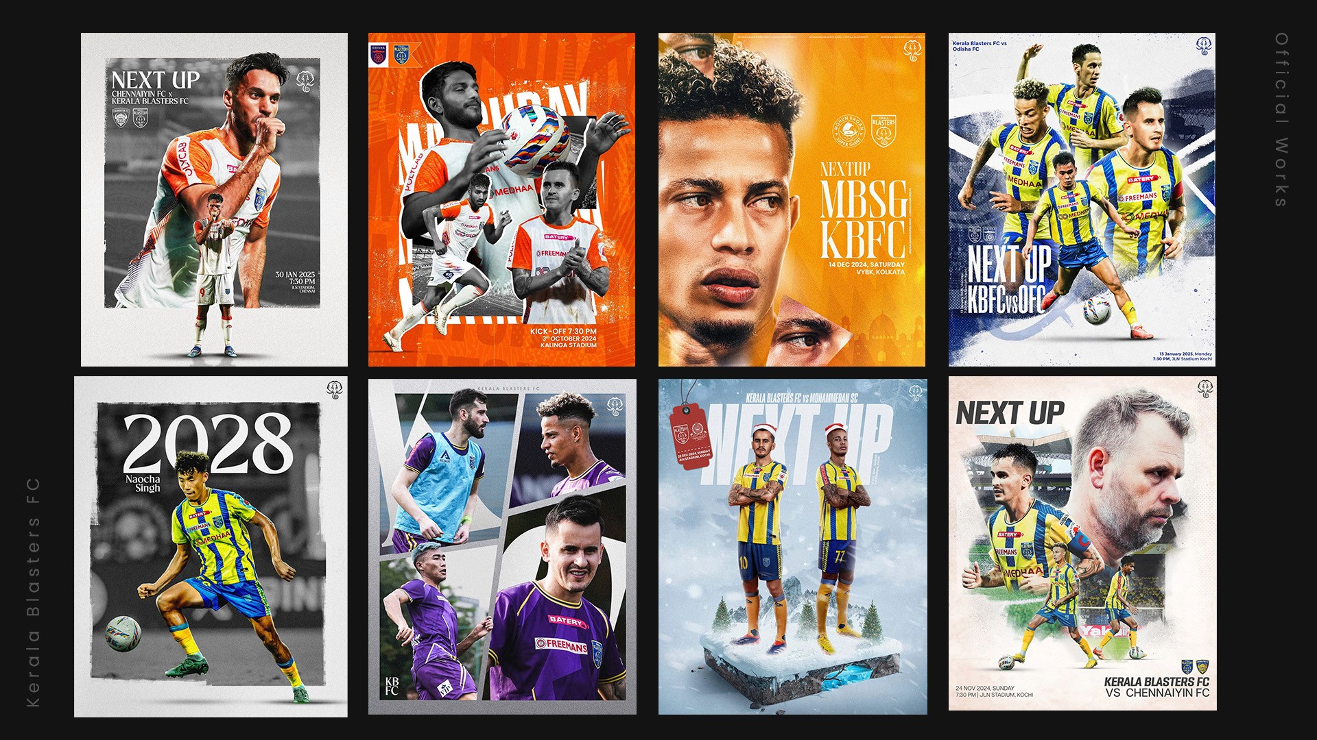 I’m currently working as the official graphic designer for Kerala Blasters FC for the 2024–25 season. I’ve handled all branding and social media designs for the club, creating impactful sports visuals tailored for their platforms and campaigns throughout the season.